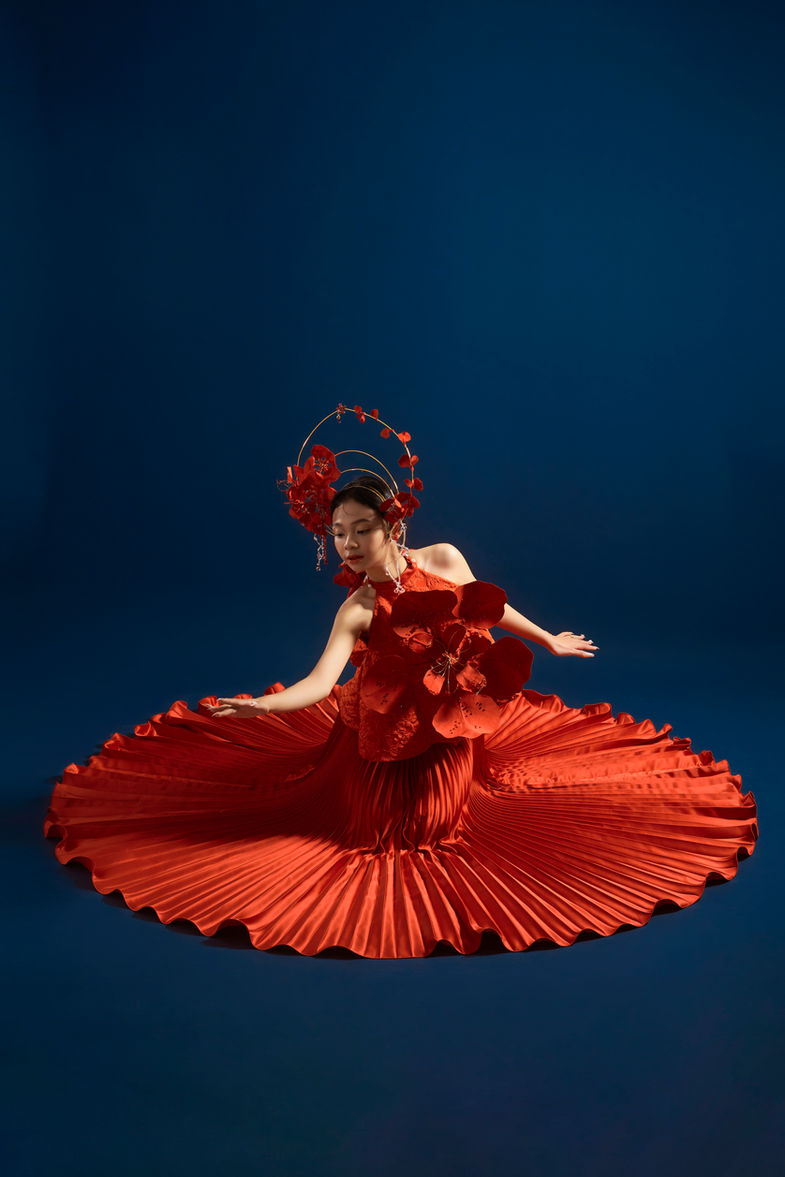 Vô tình nhìn thấy hình hoa phượng trên mạng xã hội khiến tôi nhớ đến cảnh giới cao nhất của tình yêu tuổi học trò đó là tình yêu “từ đồng phục đến váy cưới”, “ từ giảng đường đến lễ đường”. Thêm vào đó, niềm yêu thích những phụ kiện, trang phục và nét đẹp văn hóa truyền thống của Việt Nam thôi thúc tôi chọn làm đề tài này. Từ lúc xác định được con đường sẽ đi sau này là hướng đến nét đẹp văn hóa của trang phục truyền thống Việt Nam, tôi luôn mơ ước được thực hiện những dự án và tôn vinh từng nét văn hóa Việt Nam trong những đồ án của mình. Lần này tôi chọn áo dài và áo yếm làm cảm hứng chính trong bộ sưu tập về trang phục cưới của mình. Lấy ý tưởng từ loài hoa phượng vĩ - “loài hoa học trò” với mong muốn tạo ra một bộ sưu tập thời trang truyền tải thông điệp về một tình yêu đẹp son sắt như màu phượng đỏ, từ niên thiếu đến hôn nhân trường trường cửu cửu.