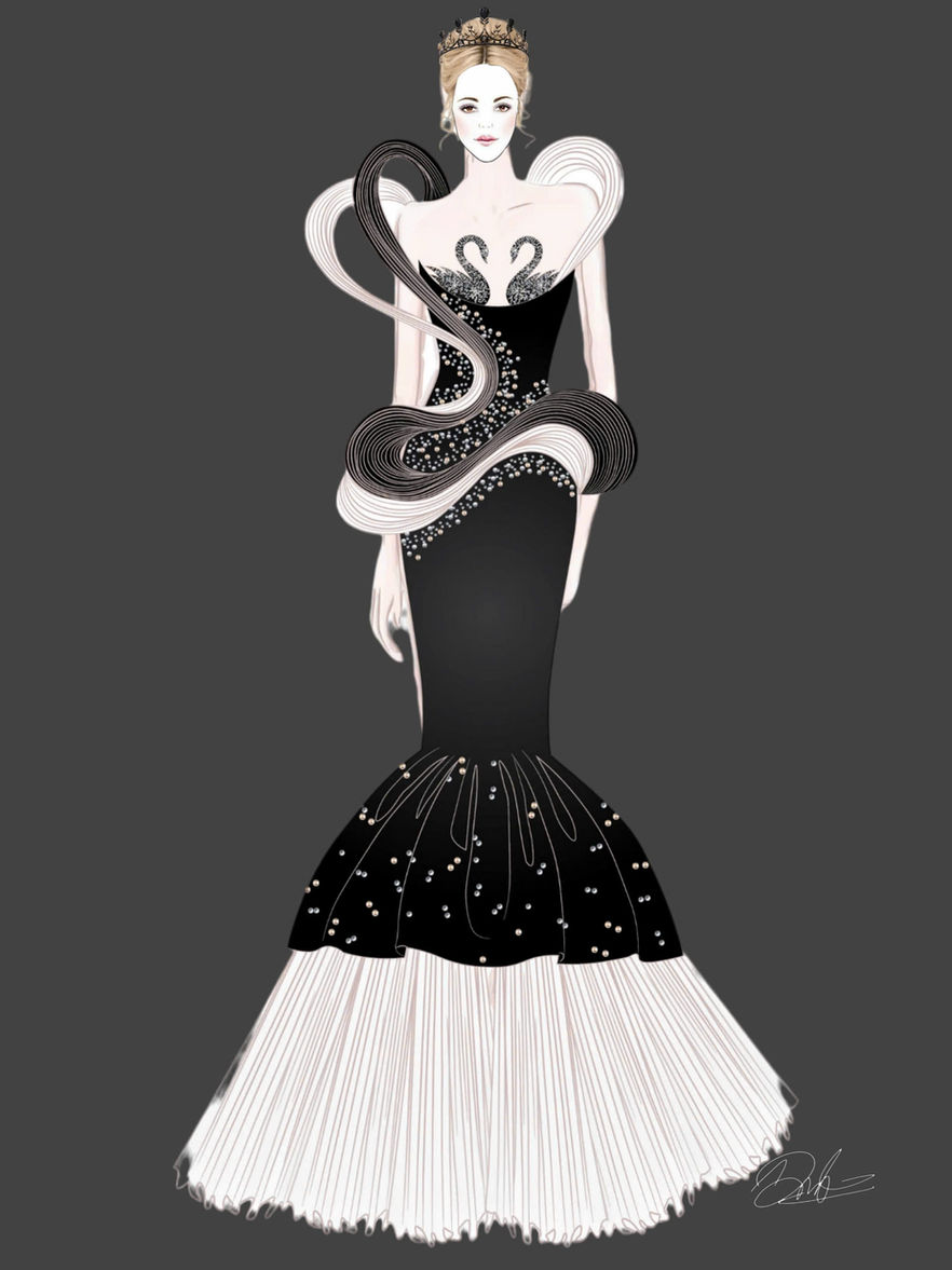 Ý tưởng thiết kế bộ sưu tập thời trang dạ hội lấy cảm hứng từ bộ phim “Black Swan” tập trung vào sự kết hợp giữa vẻ đẹp mỏng manh và bóng tối u ám, tạo ra sự cân bằng hoàn hảo giữa sự thanh thoát và mạnh mẽ. Các thiết kế sẽ sử dụng chất liệu như lụa, satin và vải sheer để tạo cảm giác bay bổng và nhẹ nhàng. Màu sắc chủ đạo là đen, trắng và đỏ, với các điểm nhấn ánh bạc tượng trưng cho sự đam mê và kịch tính.