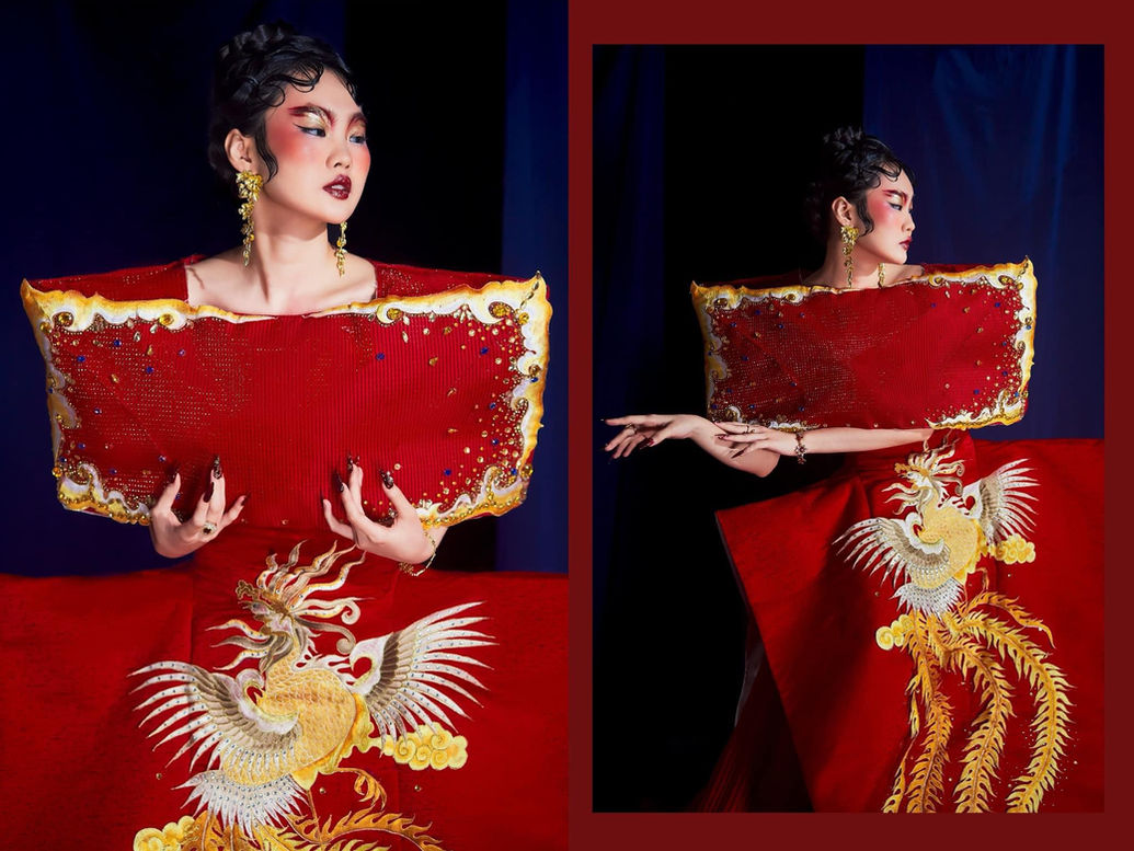 Bộ sưu tập THỜI VÀNG SON lấy ý tưởng từ nghệ thuật ca kịch Cải Lương. Cải Lương là loại hình kịch hát có nguồn gốc từ Nam Bộ, hình thành trên cơ sở dòng nhạc Đờn ca tài tử và dân ca miền đồng bằng sông Cửu Long . Cải Lương thể hiện qua sân khấu biểu diễn đề tài kịch bản, nghệ thuật biểu diễn ,dàn nhạc và bài bản. Hình ảnh các giai đoạn thăng trầm của một cô đào kép đã được khắc họa rõ nét qua bộ sưu tập này. Qua đó thể hiện cả 1 quá trình hình thành và phát triển đỉnh cao của Cải Lương sau đó dần lụi tàn nhưng vẫn nhen nhóm trong thời kỳ hiện đại của chúng ta đến tận ngày nay như một loại hình văn hoá truyền thống khó có thể thay thế. Bộ sưu tập lần này được sử dụng các kỹ thuật như thêu , đính thủ công như kim sa , đá pha lê, … đã làm điểm nhấn cho bst này. Chất liệu lần này có tạo nên form dáng kết cấu có phần khác lạ tạo nên một vẻ đẹp riêng. Gam màu rực rỡ như tạo nên vẻ đẹp kiêu kì cho các cô đào chính của vở kịch trở lên lộng lẫy thu hút mọi ánh nhìn. Qua đó tạo thành một nét đẹp kiêu sa mà mỗi nhân vật chính trong các vở Cải Lương cần phải có. Qua đó phát huy hết cái vẻ đẹp hào nhoáng mà không bị pha lẫn bởi bất kì một thứ gì khác. Vẻ đẹp của cả sân khấu, ca kịch, trang phục được kết hợp với nhau một cách hài hòa nhất.