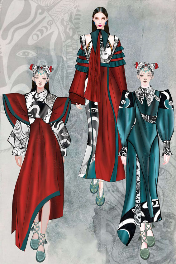 Trong kho tàng văn hóa nghệ tộc Việt Nam, Tuồng ( hay Hát Bội ) là bộ môn nghệ thuật sân khấu truyền thống độc đáo, ẩn chứa những tinh hoa văn hóa và giá trị nghệ thuật đặc sắc. Qua hàng trăm năm qua, loại hình này đã vượt qua bao thăng trầm của lịch sử để góp phần làm nên bản sắc văn hóa Việt Nam. Tuy nhiên Tuồng (hay Hát Bội) đang đứng trước nguy cơ mai một và khó khăn tìm cho mình hướng đi tích cực, nhằm bảo tồn và phát huy được những giá trị nghệ thuật. Nhận thấy điều đó, cũng như mong muốn lan tỏa tinh thần tôn vinh nghệ thuật dân tộc. Bst mang tên "Dư Niệm" đã được ra đời. Với ý tưởng từ những chiếc mặt nạ, đường nét khi các nghệ sĩ hóa trang, cùng màu sắc rực rỡ của sân khấu, em đã đưa chúng vào những thiết kế của mình. Tone màu được sử dụng với màu đỏ chủ đạo - tone màu đặc trưng của sân khấu Hát Bội, điểm thêm tone xanh truyền thống Á Đông, cùng những nét mực đen thể hiện rõ ràng nét vẽ mặt nạ trên những tác phẩm thiết kế của mình.
