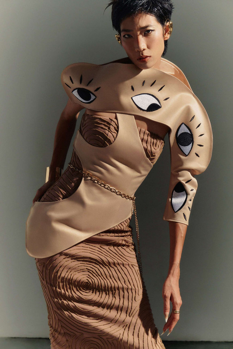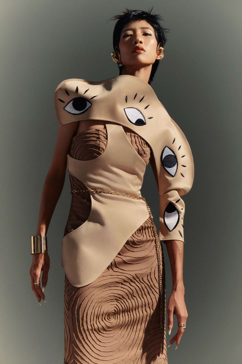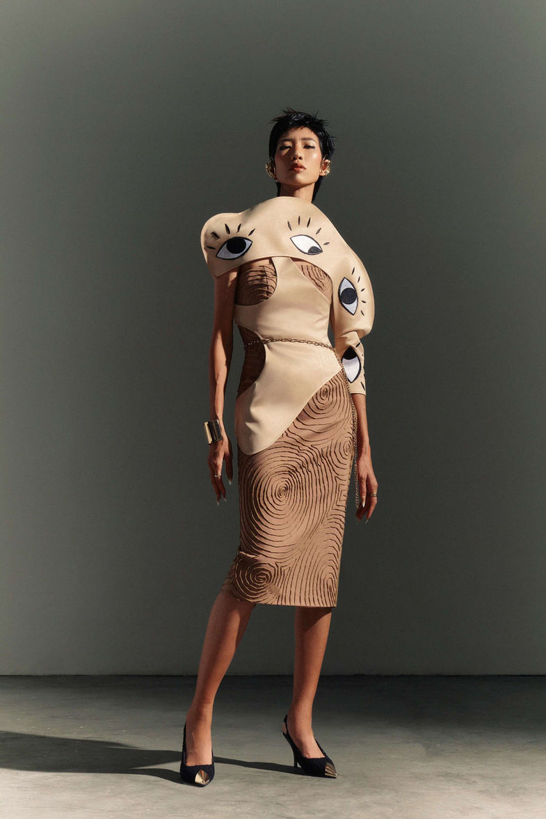 Thông thường chúng ta dùng các giác quan để cảm nhận, khám phá về thế giới bên ngoài cho nên ở bộ sưu tập này em muốn quay ngược về bên trong dùng các giác quan để nhìn vào chính nó. Khi nhìn các giác quan với những góc nhìn nhiều chìu khác nhau sẽ cho ra những ý tưởng thú vị. Ý tưởng được đưa vào BST bằng những biểu tượng tượng trưng cho năm giác quan như Tay, Tai, Mắt, Mũi, Miệng, Da, Gương Mặt...Từ quan điểm thẩm mỹ cá nhân kết hợp cùng phong cách Deconstruction ( tái cấu trúc ) mong muốn mang đến cho người mặc vẻ đẹp sang trọng, có phần tối giản và độc đáo. Qua BST em mong muốn phần nào mọi người sẽ nhìn lại, yêu thương bản thân mình hơn nữa vì hạnh phúc đôi khi chỉ là chúng ta sinh ra với đầy đủ các giác quan để cảm nhận trọn vẹn thế giới.