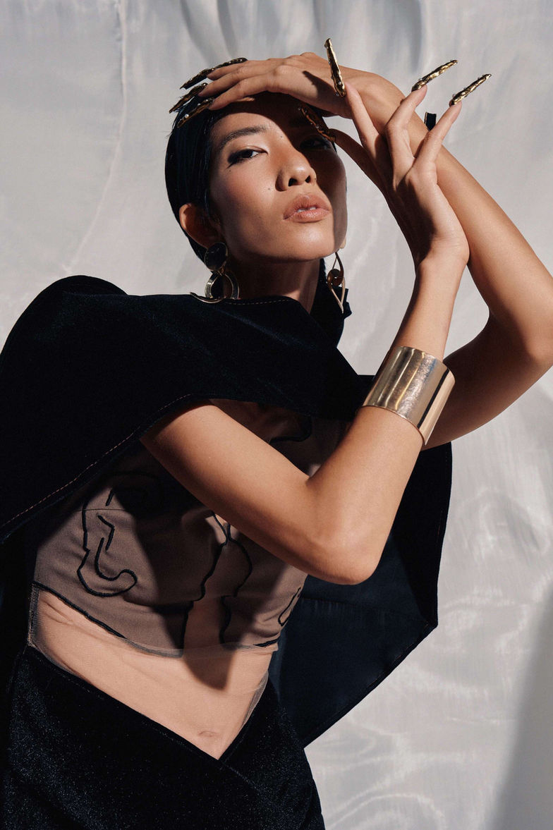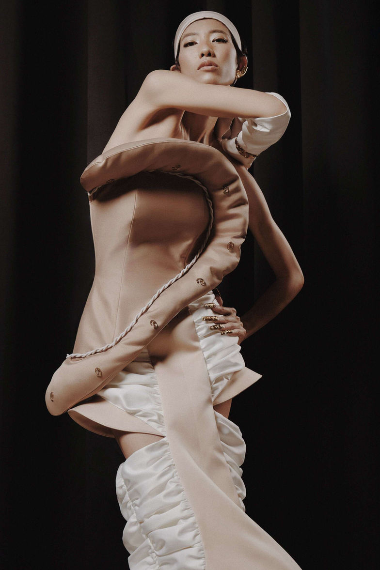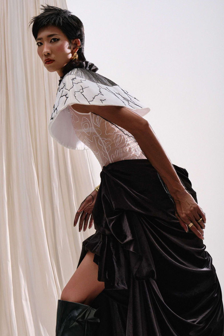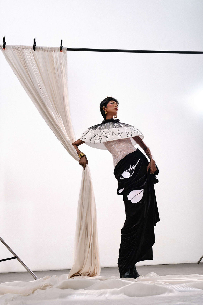 Thông thường chúng ta dùng các giác quan để cảm nhận, khám phá về thế giới bên ngoài cho nên ở bộ sưu tập này em muốn quay ngược về bên trong dùng các giác quan để nhìn vào chính nó. Khi nhìn các giác quan với những góc nhìn nhiều chìu khác nhau sẽ cho ra những ý tưởng thú vị. Ý tưởng được đưa vào BST bằng những biểu tượng tượng trưng cho năm giác quan như Tay, Tai, Mắt, Mũi, Miệng, Da, Gương Mặt...Từ quan điểm thẩm mỹ cá nhân kết hợp cùng phong cách Deconstruction ( tái cấu trúc ) mong muốn mang đến cho người mặc vẻ đẹp sang trọng, có phần tối giản và độc đáo. Qua BST em mong muốn phần nào mọi người sẽ nhìn lại, yêu thương bản thân mình hơn nữa vì hạnh phúc đôi khi chỉ là chúng ta sinh ra với đầy đủ các giác quan để cảm nhận trọn vẹn thế giới.